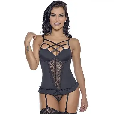 espartilho sensual, lingerie fio dental, corpete com ligas, lingerie ousada feminina, microfibra e renda.